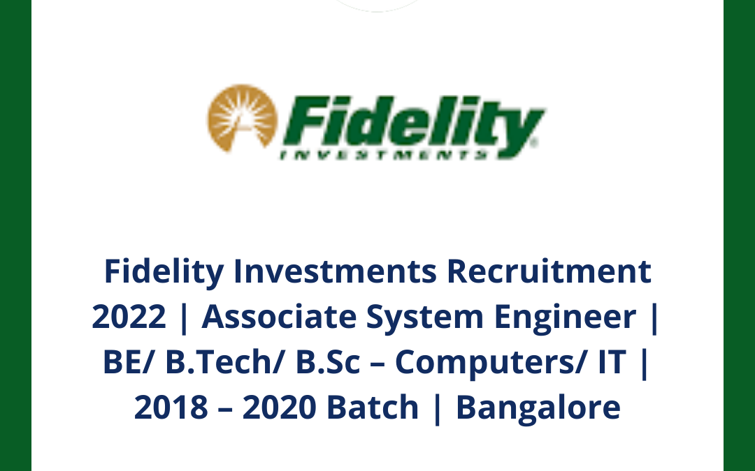 Fidelity Investments Recruitment 2022 Associate System Engineer Be B Tech B Sc Computers It 2018 2020 Batch Bangalore Illuminate Minds