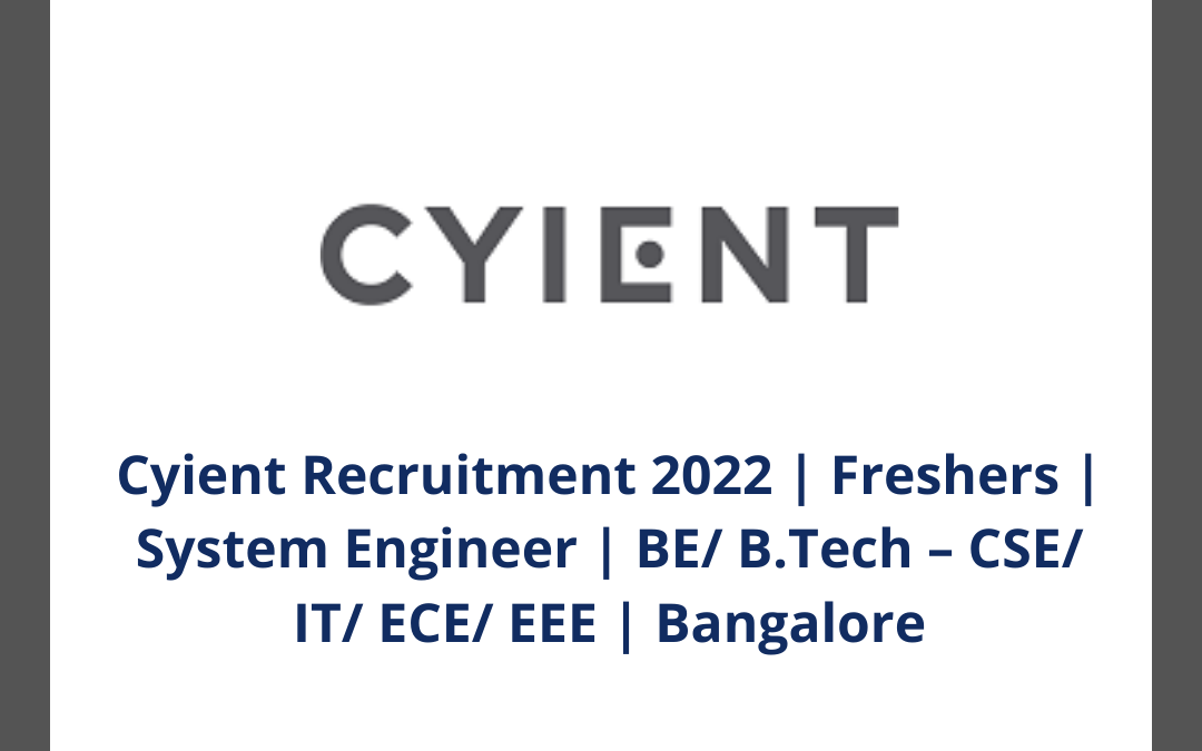 Cyient Recruitment 2022 Freshers System Engineer Be B Tech Cse It Ece Eee Bangalore Illuminate Minds
